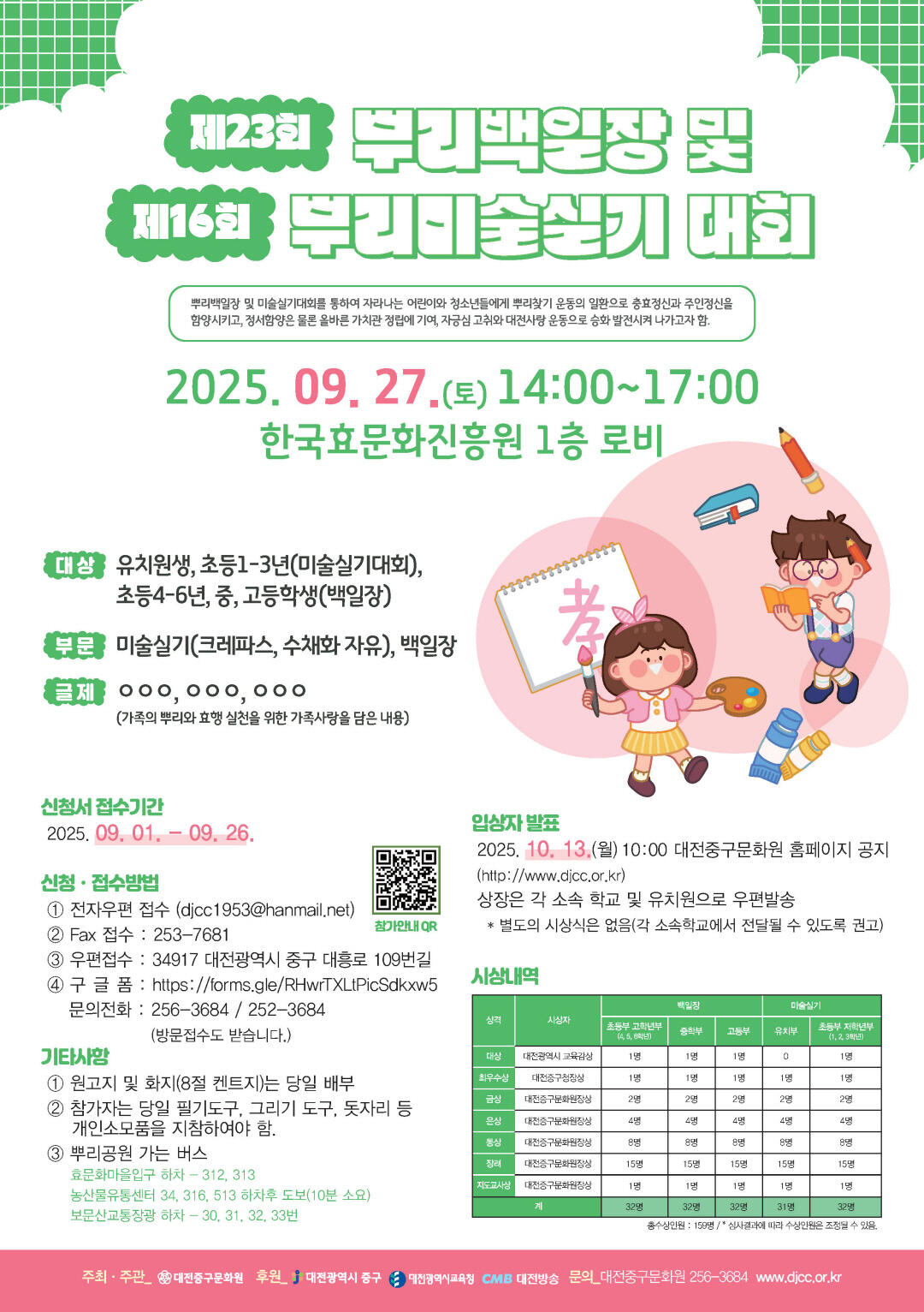 제23회 뿌리백일장 및 제16회 미술실기대회 참가신청 안내