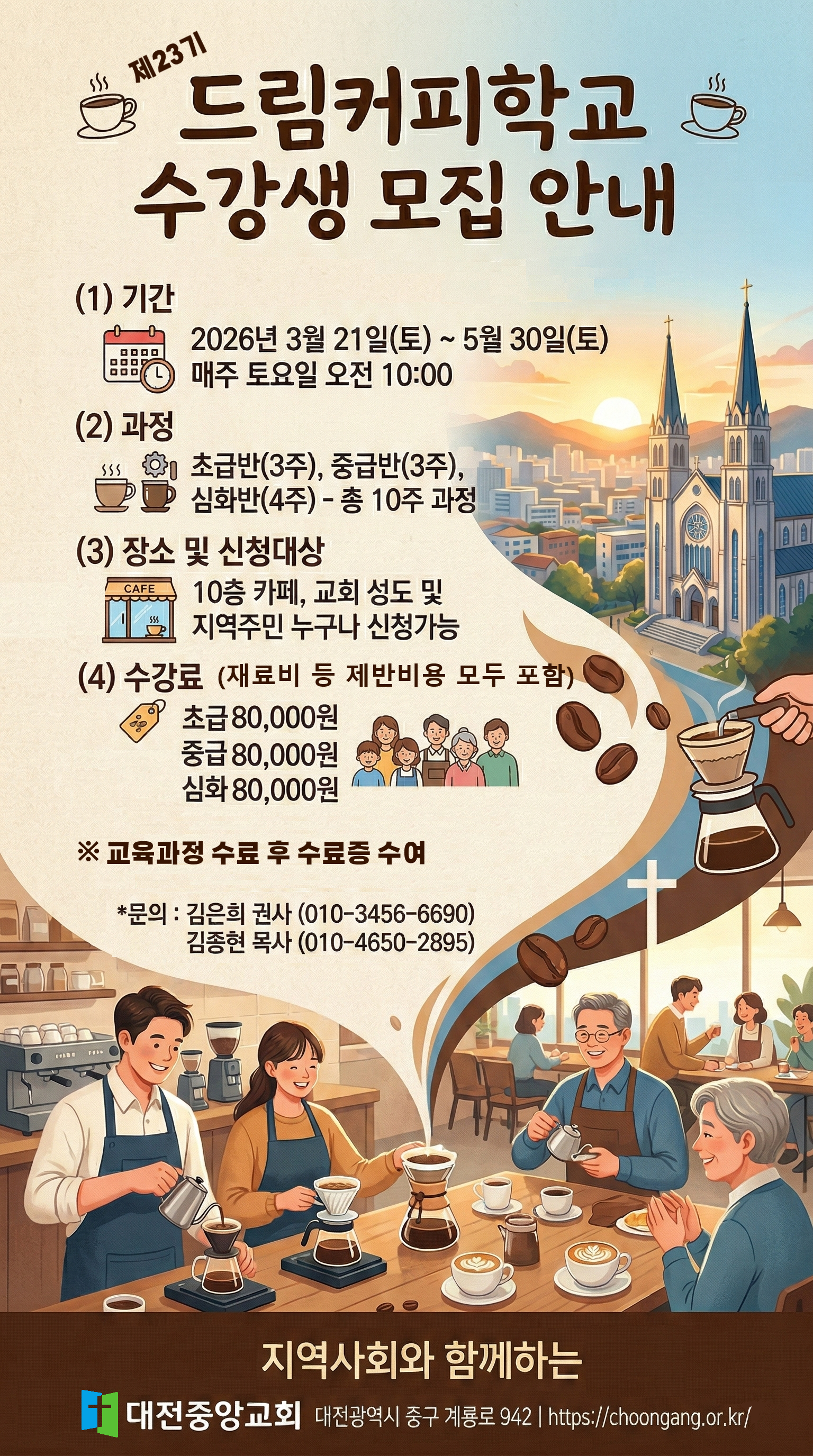 ☕ 드림커피학교 수강생 모집 안내 ☕대전중앙교회 드림커피학교 23기 수강생을 모집합니다