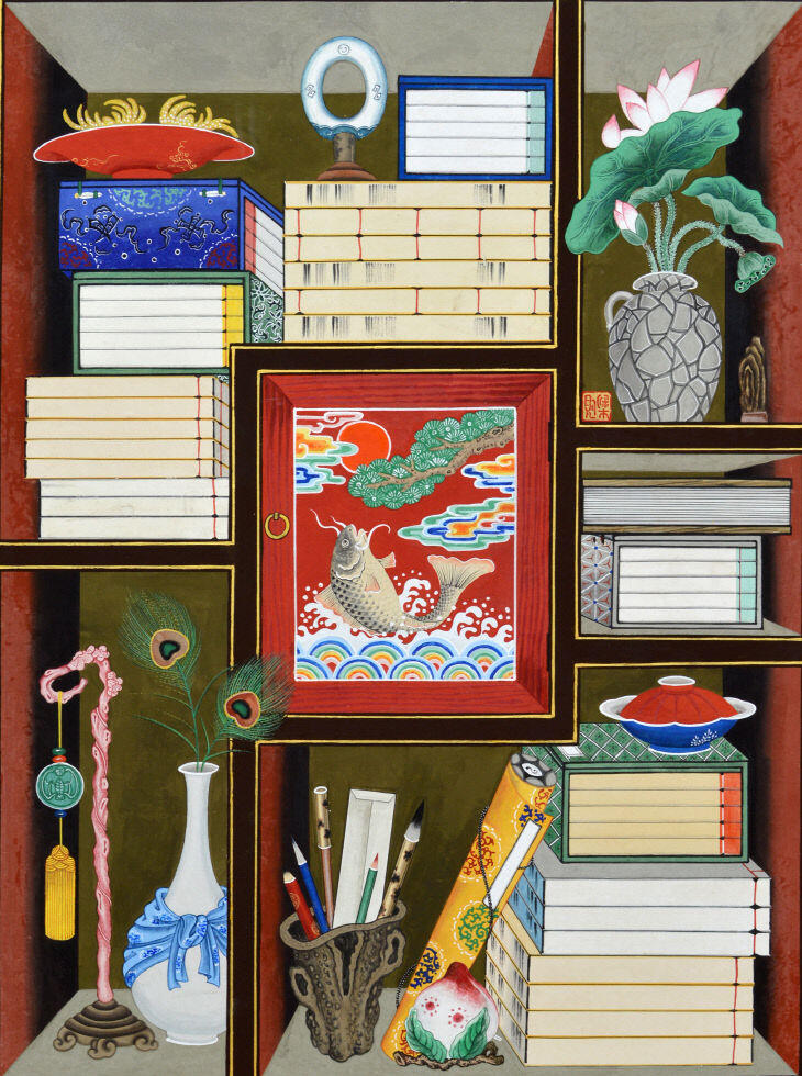 올해 보문미술대전 대상작으로 임숙영 작가의 '약리책가도(민화)'를 비롯한 5점 작품이 대상의 영광을 안았다.