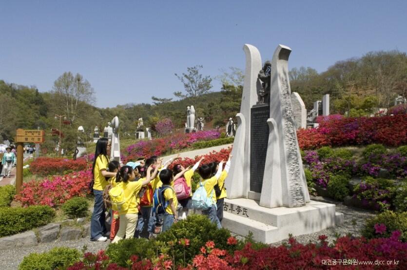 잔디광장 한편에 있는 뿌리 깊은 샘물은 지하 200M에서 나오는 암반수로서 청룡, 백호, 주작, 현무의 사신도와 12지지를 형상화한 조형물로 시원한 분수와 음용수로도 인기를 독차지하고 있으며, 유등천 수변을 끼고 조성된 수변무대는 야외공연, 각종 문화 행사 및 야외 결혼식 등 이벤트 행사 장소로서 최적지일 뿐만 아니라 공원 정상의 삼남 기념탑은 영·호남, 충청도의 화합과 상부상조를 기원하는 의미의 상징성과 공원을 한눈에 바라볼 수 있는 전망대의 역할도 하고 있습니다.